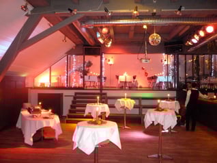 Das 5éme ETAGE mit seinem grosszügigen Fumoir eignet sich hervorragend für private wie auch für geschäftliche Anlässe. Der Raum bietet Platz für insgesamt 120 Personen, verfügt über eine sehr gute Ausstattung und ist behindertengerecht. Eine Küche mit Geschirrspüler, Gastroherd, grossen Kühlschränken und Geschirr ist vorhanden. Zur Grundausstattung gehören zudem Tische, Stühle, kleine Sound-Anlage, verschiedene Lichtanlagen, getrennte WC-Anlagen und vieles mehr.